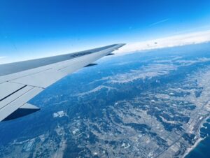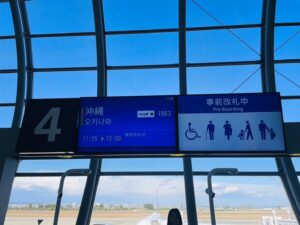 晴れ渡る青空の仙台空港を出発し、那覇空港に到着しました。