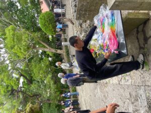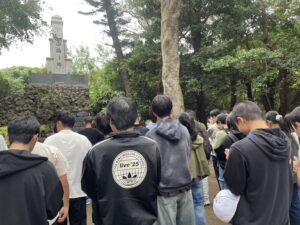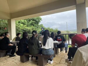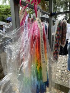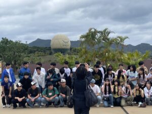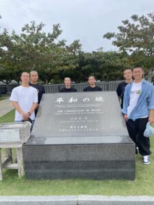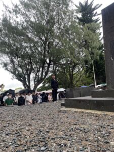 2日目は、平和学習です。雨の中、「山形の塔」、「白梅の塔」を訪れ、で沖縄戦で亡くなった方へ黙とうを捧げました。