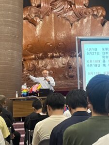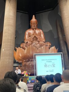 「着座にて・・・」と話し始めましたが、平和への熱い思いに溢れており、生徒達もメモを取りながら話に聞き入っていました。