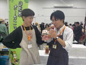 4人は「蔵王かぼちゃ祭」にボランティアとして参加したことをきっかけに、生産者の二ノ戸新太さんと交流を持つようになりました。その後、二ノ戸さんにインタビューをしたところ生産者の課題として「担い手・後継者不足」が深刻であることが挙げられました。そこで4人は「蔵王かぼちゃの特徴や、調理方法などの認知度を高めることで販売促進され、その需要に合わせて生産者が増加する」という仮説を立てて、解決のためのアクションプラン「蔵王かぼちゃを全国へ」を作成しました。それが評価につながり、最終審査に残ることができました。