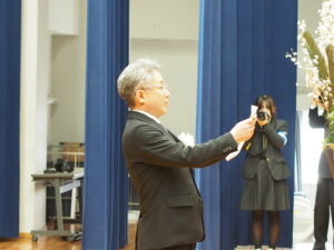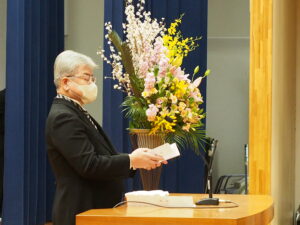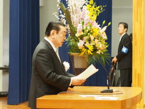 吉村和文理事長による祝辞では、混とんとする世界情勢の中では、多様性に富んだ人材が有用である。今後の人生の中で、世界平和を念頭に入れた人間力向上に努めてほしいとエールを送りました。
